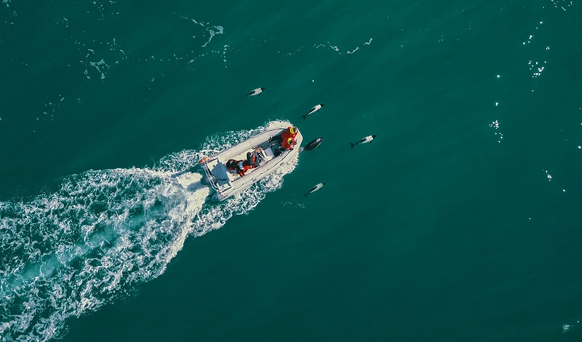 Por Bahía Camarones rumbo a Islas Blancas, con observación de colonias de lobos marinos, cormoranes imperiales y una gran diversidad de aves marinas. Durante la navegación es posible ver toninas, delfines australes, ballenas jorobadas y ballenas sei.