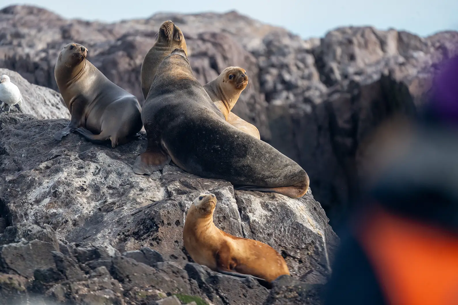 Al bajar de la embarcación, el entorno recibe al visitante con una intensidad abrumadora, marcada por el olor penetrante del mar, el viento incesante y el sonido gutural de la colonia de lobos marinos que custodian la costa.