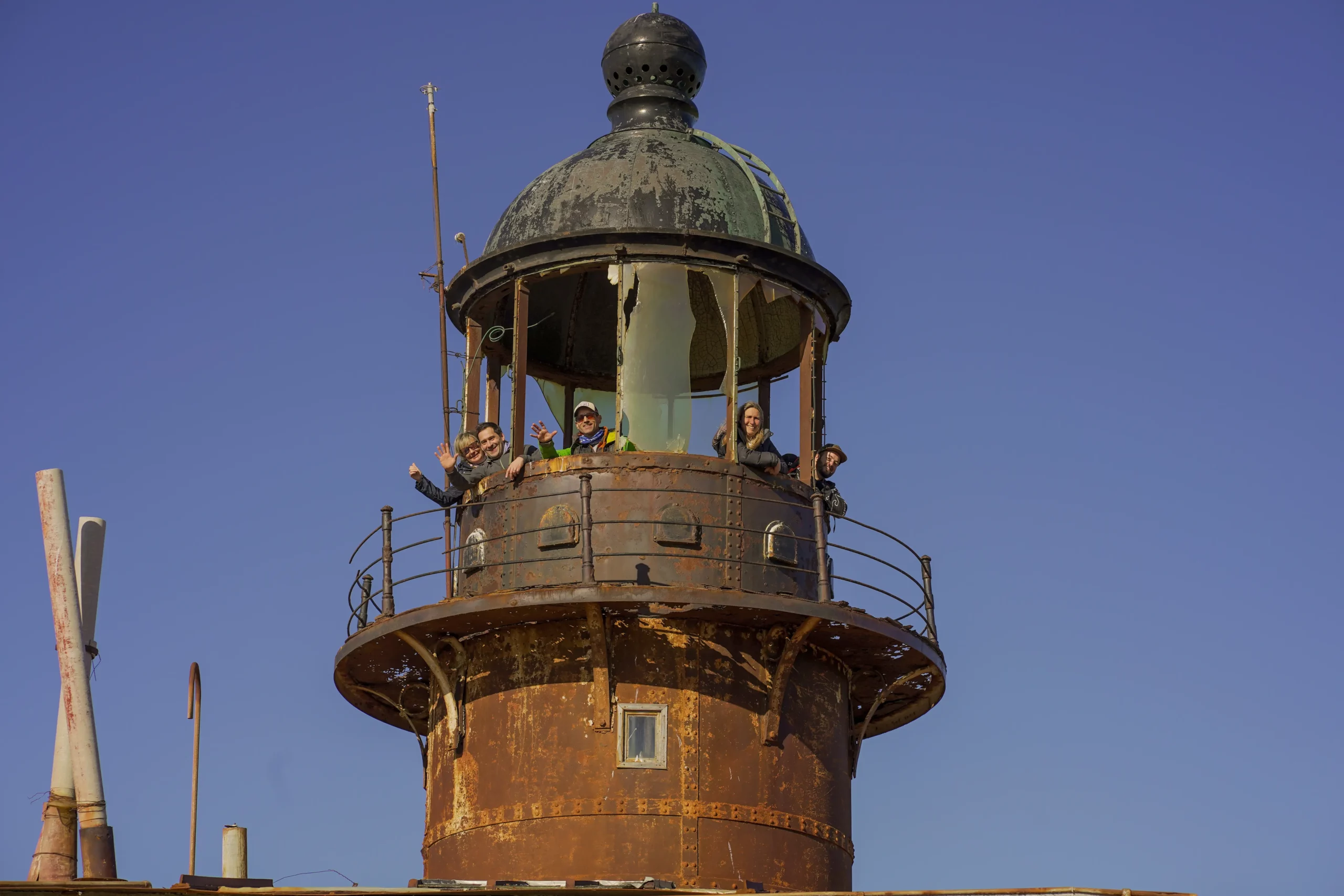 El estado actual del faro añade una capa de dramatismo a la visita. La corrosión avanzada y el deterioro estructural evidencian su fragilidad. De hecho, la escalera caracol que permitía el ascenso a la cúpula se encuentra clausurada por riesgo de derrumbe, impidiendo disfrutar de la vista que tenían los torreros, pero sumando valor al relato de lo que se está perdiendo.