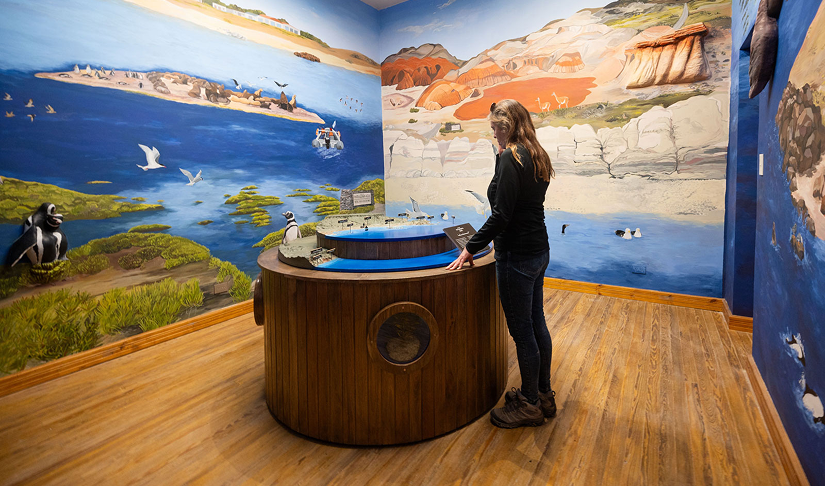 Ubicado en un casco de estancia centenario, en el Centro de Interpretación de Patagonia Azul los visitantes encontrarán un espacio de información acerca de los proyectos de protección marina y restauración ecológica que se llevan adelante en el parque. Cuenta con una confitería, acogedores espacios para la lectura y regalería de productos artesanales.